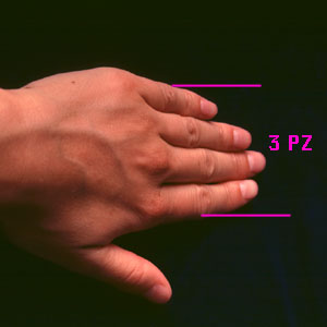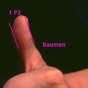 Ein Proportionalzoll ist ein den individuellen Proportionen einer Person rechnungtragendes Längenmass. 1 Proportionalzoll (PZ) entspricht beispielsweise der Breite des Daumens auf Höhe des Interphalangealgelenks.