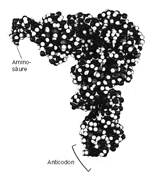 Die Aminosäuren, die bei der Translation gemäss dem genetischen Code an die wachsende Polypeptidkette angehängt werden, erkennen die Codons auf der mRNA nicht wie Enzyme ihre Substrate nach dem "Schlüssel-Schloss-Prinzip". Für die Vermittlung zwischen der mRNA mit ihren Codons und den dazu passenden Aminosäuren ist ein besonderer Adapter notwendig - die Transfer RNA oder tRNA.