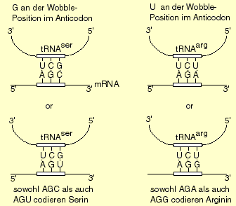 Bildquelle: Brown, Terence A.: "Moderne Genetik - eine Einführung", Spektrum Akademischer Verlag 1993, ISBN 3-86025-180-5Genaueres über diese Wobble-Hypothese,