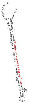 Fig.: Vorläufer für eine humane miRNA. Der rote Anteil ist die reife miRNA.