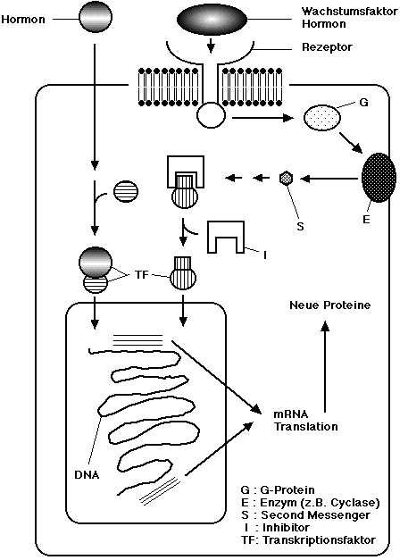 Figur: Die Bindung des Hormons an den Rezeptor führt zur Aktivierung einer Signaltransduktionskette.