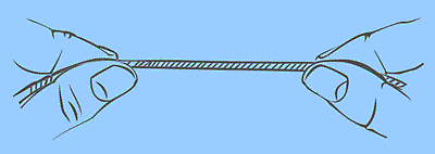1. Spannen Sie einen ca. 10 cm grossen Abschnitt der Schnur zwischen Daumen und Zeigefinger Ihrer beiden Hände: