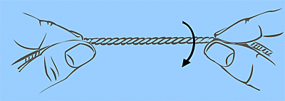 2. Verdrillen Sie ein Ende mit Daumen und Zeigefinger der geschickteren Hand, während Sie das andere Ende festhalten. Die Windungszahl der Schnur hat nun entweder zugenommen (positives Superscrolling) oder abgenommen (negatives Superscrolling):