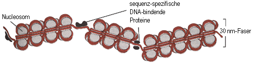 Die Solenoid-Faser wird gelegentlich von Nicht-Histon-Proteinen in Segmente unterteilt, wie folgendes Modell zeigt: