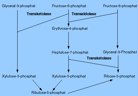 Die Zucker für die Nucleosid-Synthese können auf zwei Wegen bereitgestellt werden, nämlich auf einem oxidativen und einem nicht-oxidativen Weg: