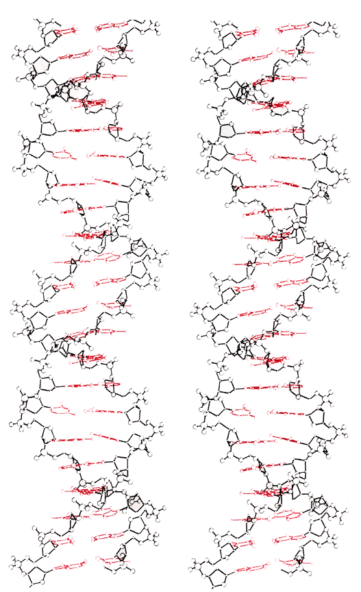 Achtung! Beim Betrachten des Stereobildes ohne Stereobrille dreht die Helix nach links statt nach rechts!