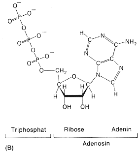 Als Beispiel für ein Nukleotid sei im folgenden Adenosintriphosphat (ATP) gezeigt, der wichtigste Energiespeicher und -überträger des Intermediärstoffwechsels: