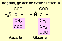 Die 20 AS unterscheiden sich einzig im Rest R, dessen Struktur, Grösse, elektrische Ladung und damit auch Wasserlöslichkeit variiert.