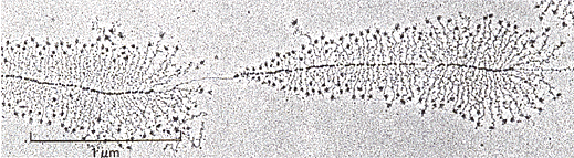 (die Vorläufer-RNAs) rechtwinklig vom "Stamm" (der DNA)